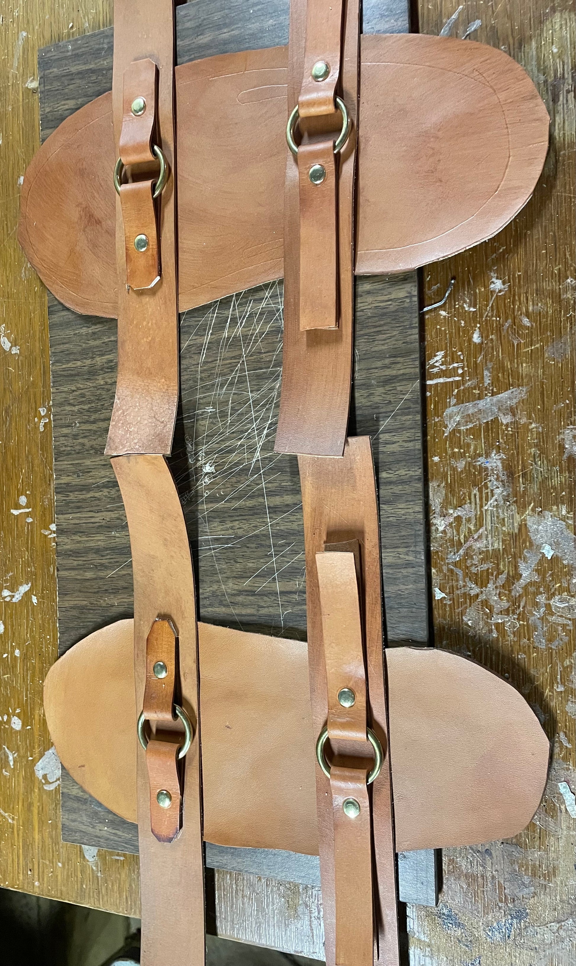 These sandals are made from Veg Tan leather. Underneath the Foot Bed, we put rawhide and foam insole for added comfort and durability. These sandals are hand cut and dyed to give it a nice finish with a nice rubber sole. The straps goes across the arch and the heel of the feet to close the sandal, we make these with adjustable straps with buckles as shown in the photos. If you have any questions regarding colors or sizes, contact us at any time.